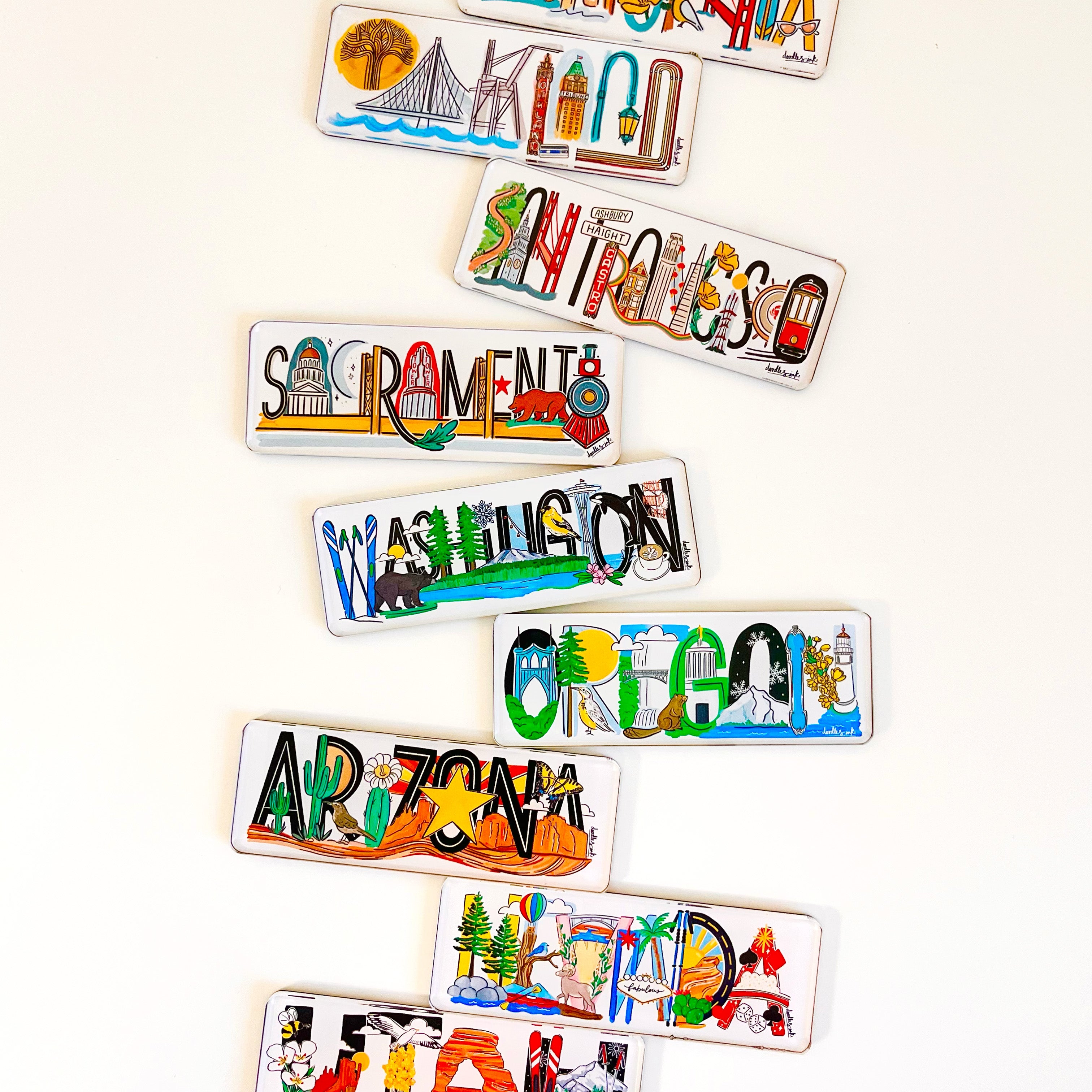 Acrylic magnet featuring unique Utah lettering, icons, and landmarks that capture the spirit of the Utah for locals and travelers alike. Perfect for adding a touch of nostalgia to your fridge, office board, or locker—a heartfelt reminder of home and travel adventures.